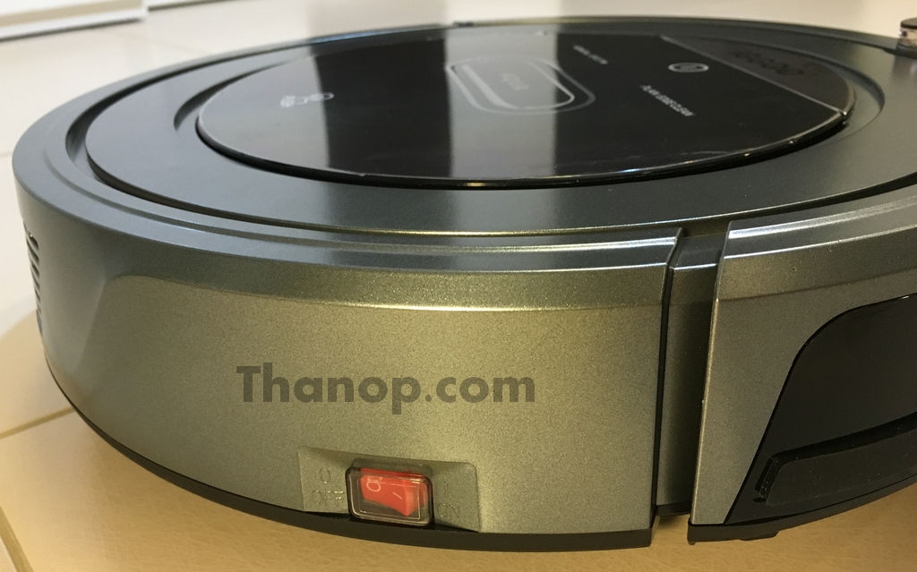 - Power Switch (ปุ่มสวิตซ์เปิดปิดเครื่องหลัก) : ปุ่มสวิตซ์เปิดปิดเครื่องหลัก ที่อยู่ทางด้านข้างของตัวเครื่อง ซึ่งอันที่จริงแล้ว ไม่ควรกดปิดเลย แต่เราจะปิดก็ต่อเมื่อ เราจะไม่ใช้ หุ่นยนต์ดูดฝุ่น เป็นระยะเวลานานๆ จึงควรปิดการจ่ายไฟ จากแบตเตอรี่ ลงตัวเครื่อง แต่ถ้าหากยังใช้งานอยู่เป็นประจำทุกๆ วัน ก็ควรที่จะ เปิดทิ้งเอาไว้เลย และ อีกจุดนึงที่ดีมากๆ ไม่เหมือนใครก็คือ เจ้าปุ่มนี้ มันมีพลาสติกใส และ ห่อหุ้มตัวปุ่ม อยู่ชั้นนอกอีกทีหนึ่ง เพื่อป้องกันเศษฝุ่น ต่างๆ เข้าไปด้านในตัวระบบ แผงวงจรหลักของตัวเครื่อง และ ตัวปุ่มเอง ซึ่งอาจเกิดความเสียหายในภายหลังได้