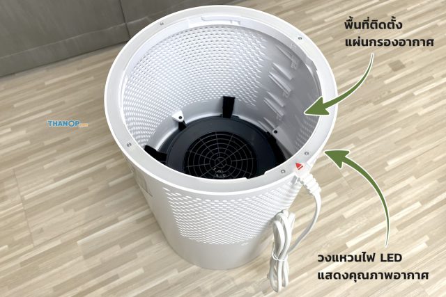 และสำหรับเครื่องนี้ ยังมีเซ็นเซอร์วัดค่าคุณภาพอากาศ ที่ถูกติดตั้งเอาไว้ที่ช่องอากาศเข้าด้านหลังของตัวเครื่อง เพื่อปรับระดับความแรงของพัดลม ให้เหมาะสมกับคุณภาพอากาศภายในห้องในขณะนั้นแบบเรียลไทม์ และค่าที่ได้เหล่านี้ ยังถูกนำไปแสดงผล ออกทางหน้าจอ LED ทรงกลม ขนาดเส้นผ่านศูนย์กลาง 2.5 นิ้ว ที่มีความคมชัด แถมสว่างอีกด้วย