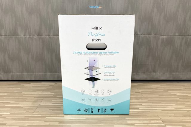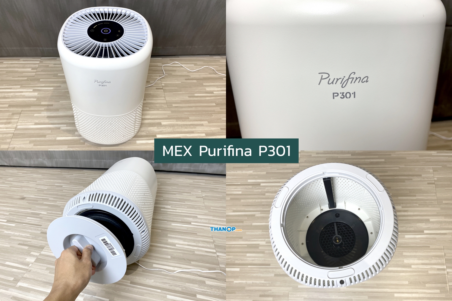 เครื่องฟอกอากาศ MEX Purifina P301 เป็นเครื่องฟอกอากาศราคาถูกประมาณ 5 พันบาท ที่มีรูปทรงที่เป็นทรงกระบอกขนาดเล็ก มีรูรับอากาศที่สามารถรับอากาศเข้าไปกรอง ได้หลากหลายทิศทาง รองรับพื้นที่ห้องขนาด 30 ตารางเมตร (มากกว่า Purifina P201 ขึ้นมาอีกหน่อย ประมาณ 6 ตารางเมตร)