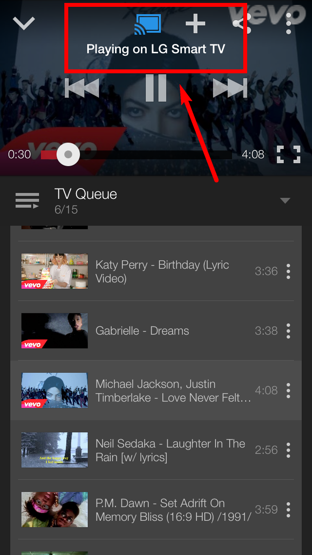 เมื่อทดลองเปลี่ยนออปชั่นไปเลือกเปิดจาก LG สมาร์ททีวี แล้ว ปรากฏว่าทั้งภาพและเสียงชัดแจ๋ว แต่มันเป็นการดาวน์โหลดคลิปใหม่นะ ถ้าใครมีบัญชี Youtube อยู่แล้ว และได้สร้างรายการเล่นเพลง (Playlist) เอาไว้ละก็ สามารถเปิดเพลงต่อเนื่องได้เลย